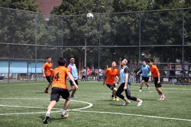 身着橙色球衣的大一队由留学生和本土球员共同组成,综合实力强劲。大二大三联队身着蓝色球衣,由大二队员和大三队员联手迎战。两支队伍又会擦出怎样的火花,奉献怎样的精彩比赛?双方队员握手合影后,由党委副书记蔡立庆老师为我们开球,比赛正式开始!